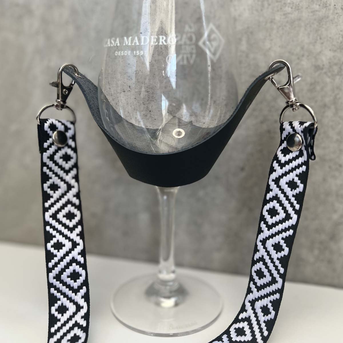 Lleva tu copa contigo a cualquier evento. La correa es de 90 centímetros de longitud y se conecta con ganchos giratorios a presión para poner y quitar fácilmente.